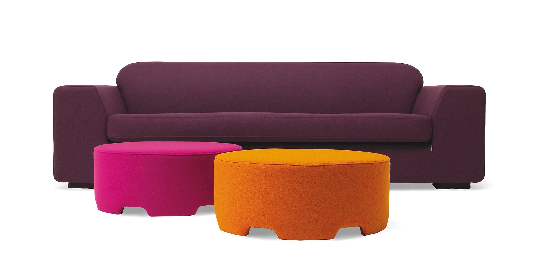 Inviting chairs and sofas play with soft forms and sharp silhouettes, weight and lightness.
